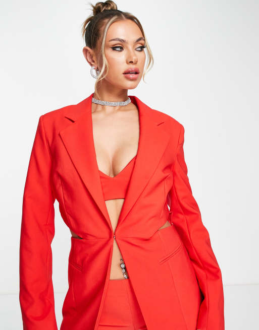 ASYOU – Rött set med kavaj med utskurna detaljer