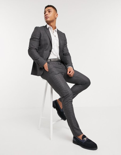 Avail London – Ljusgrå, storrutig kostym med extra smal passform