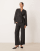 AWARE – Mörkgrått, melerat set med figursydd kavaj med knytning i sidan och stilrena byxor med vida ben