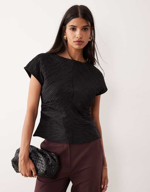 AWARE – Svart, strukturerad topp med båtringning och plissering