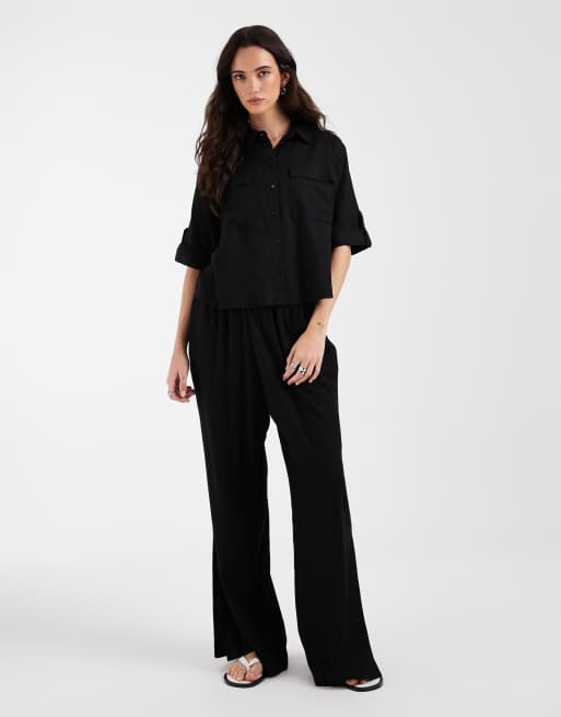 AWARE – Svarta byxor i linnemix med vida ben och hög midja, del av set