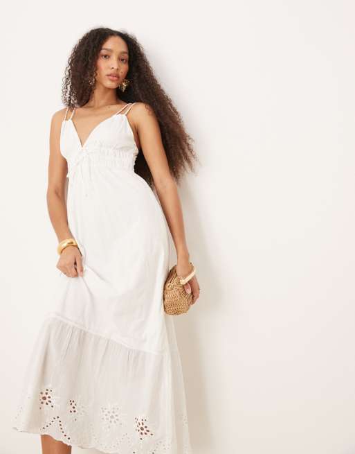 AWARE – Vit sommarklänning i maxilängd med broderier och axelband