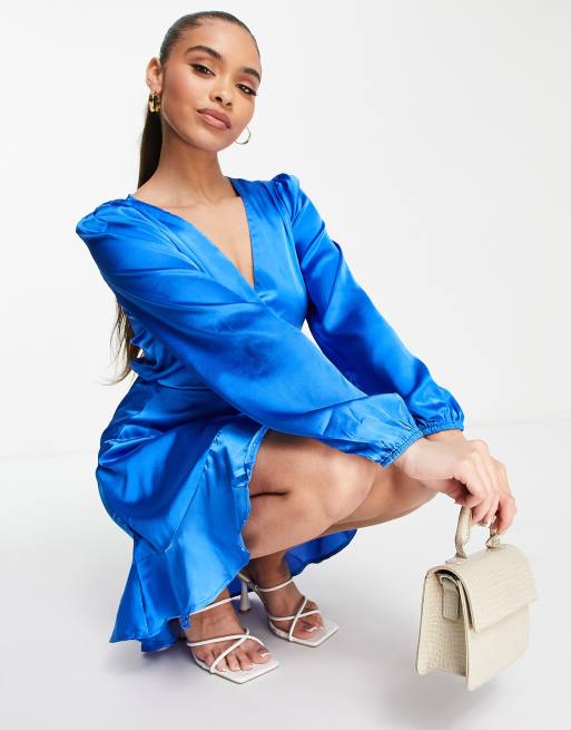 AX Paris – Blå miniklänning i satin med omlottdesign