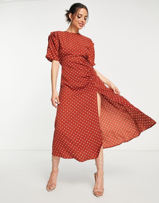 AX Paris – Rödprickig midiklänning med rund halsringning
