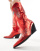Azalea Wang – Timothee – Rödmetalliska knähöga boots i cowboystil