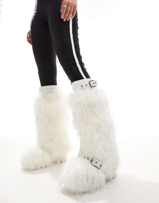Azalea Wang – Tommie – Vita, fluffiga, knähöga boots