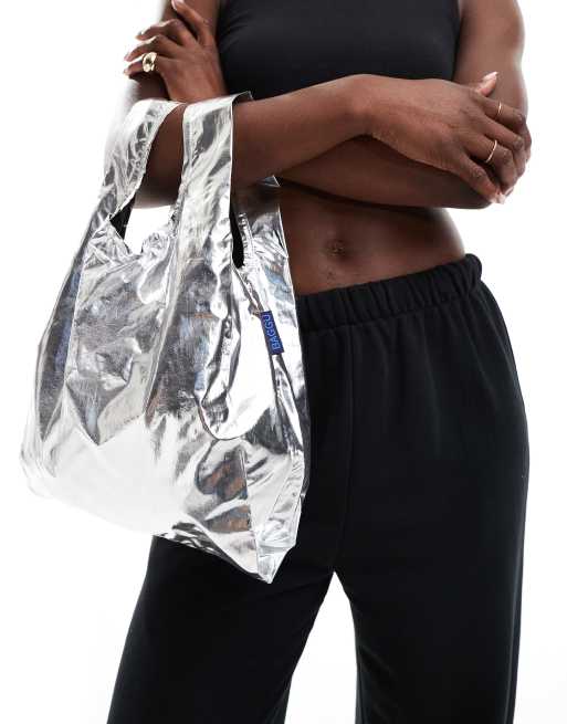 Baggu – Silvermetallisk, liten shoppingväska i nylon
