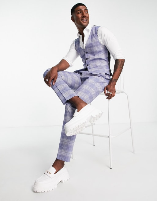 Bando – Marinblå rutig kostym med smal passform