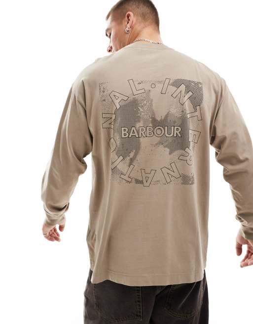 Barbour International – Brungrå t-shirt med långa ärmar och tryck