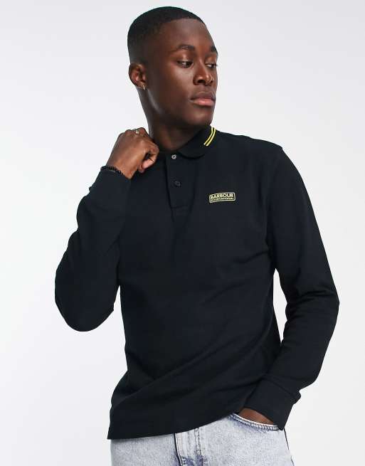 Barbour International – Svart pikétröja med långa ärmar, kantrand och krage