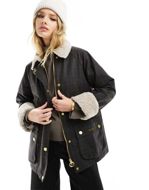 Barbour – Swainby – Grön, skotskrutig, vaxad jacka med teddykrage