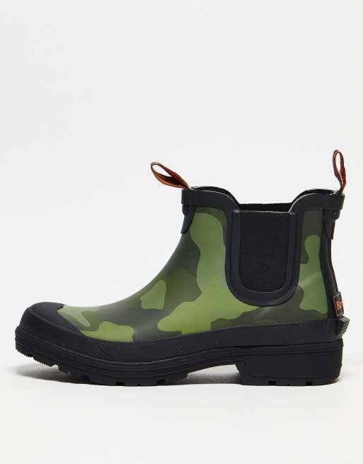 Barbour x ASOS – Exklusivt – Storm – Svart och kamouflagemönstrade gummistövlar med lågt skaft