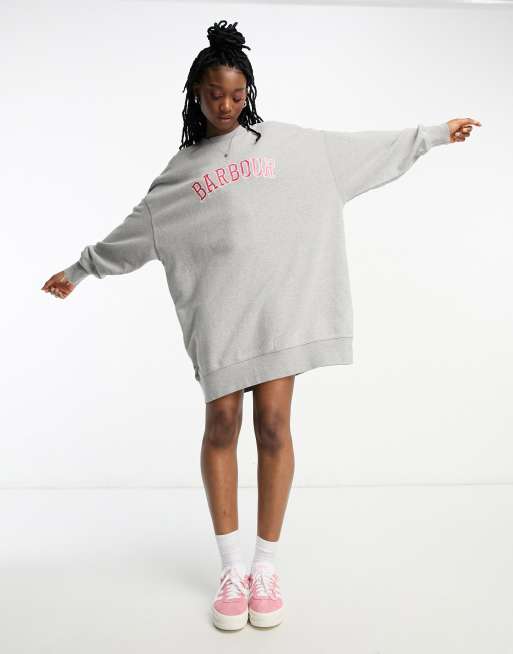 Barbour x ASOS – Grå sweatshirtklänning i collegestil och oversize
