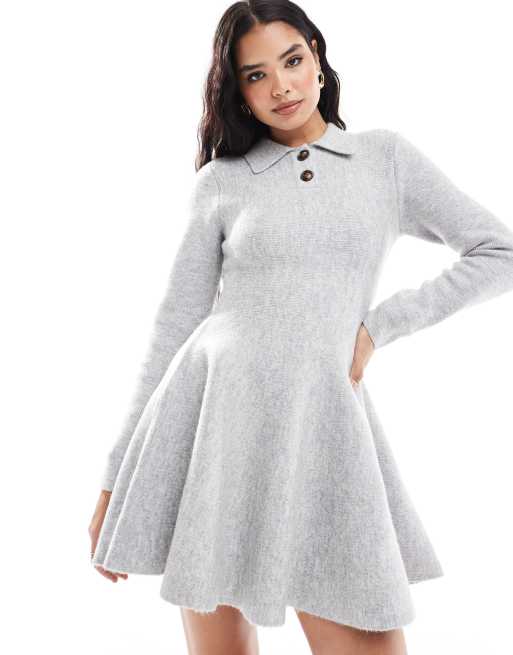 Bardot – Grå, stickad miniklänning med vid design