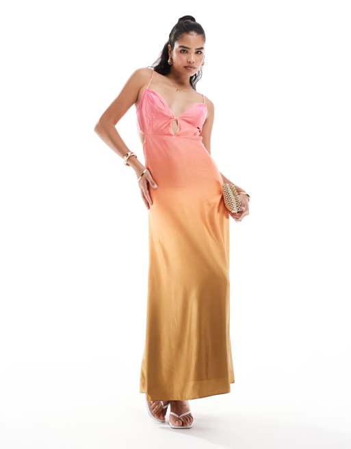 Bardot – Rosa ombréfärgad klänning i satin med smala axelband