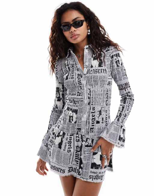 Basic Pleasure Mode – Flerfärgad, smockad miniklänning med Gazette-tryck