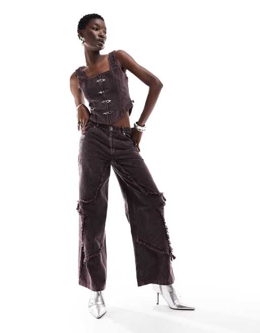 Basic Pleasure Mode – Starl – Mörklila manchesterbyxor med vida ben, del av set