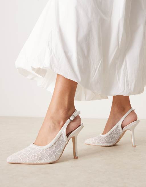 Be Mine Wide Fit – För bruden – Vidha – Benvita klackskor i spets med hälrem
