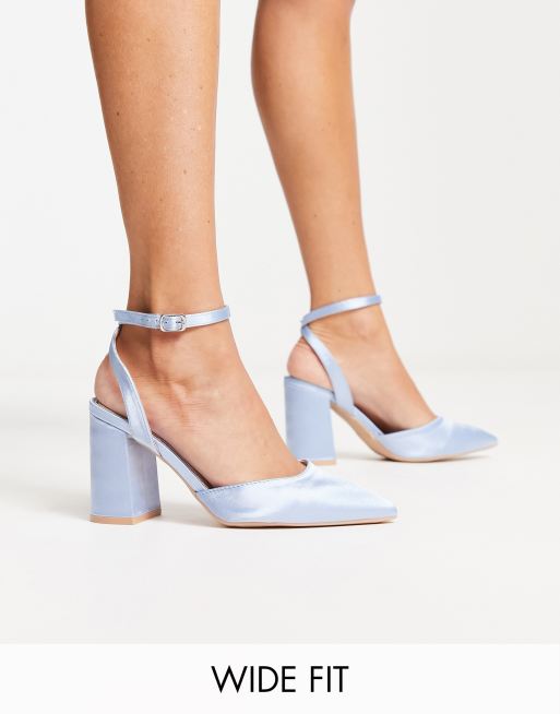 Be Mine Wide Fit – Neima – Ljusblå klackskor med blockklackar i satin