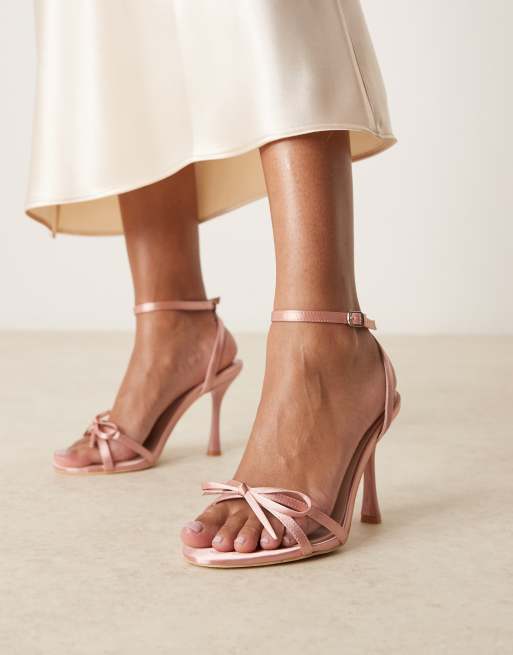 Be Mine – Sharly – Rosa klacksandaler i satin med rosett