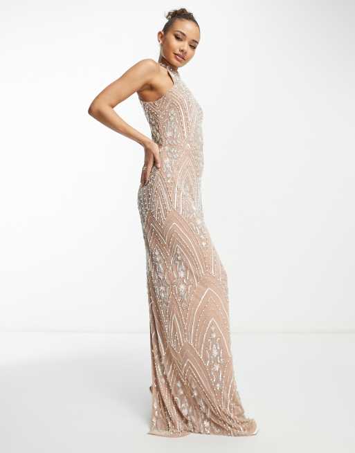 Beauut – Brudtärnor – Brungrå, helutsmyckad maxiklänning