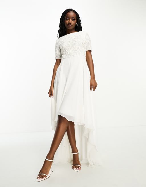 Beauut – För bruden – Elfenbensvit, utsmyckad 2-i-1-klänning med ojämn fåll
