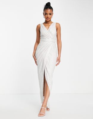 Beauut – För bruden – Vit maxi-omlottklänning med skimrande utsmyckningar
