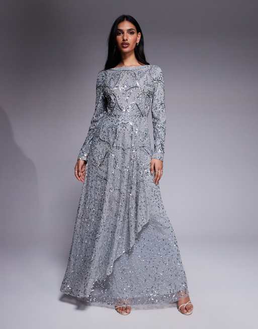 Beauut – Hanaa – Grå maxiklänning med långa ärmar och flera lager