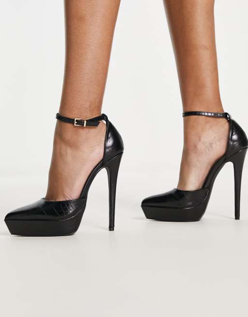 BEBO – Ridha – Svarta, krokodilmönstrade skor med platåklack och spetsig tå