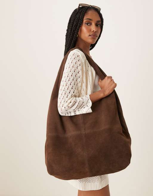 Becksondergaard – Dalliea – Mörkbrun, slouchy toteväska i mocka med axelband