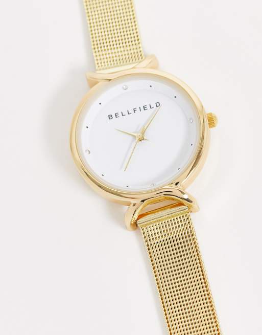 Bellfield – Guldfärgad klocka i rostfritt stål med mesharmband