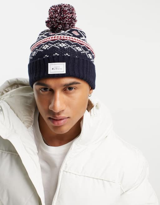 Ben Sherman – Marinblå, fairislemönstrad mössa med tofs