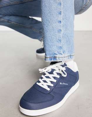 Ben Sherman – Marinblå, minimalistiska sneakers med snörning och vitt foder