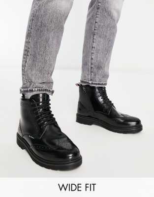 Ben Sherman – Svarta grova brogueboots i läder med bred passform