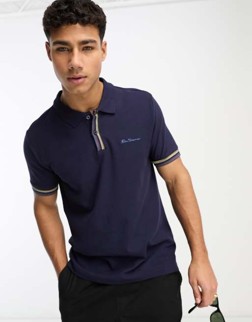 Ben Sherman – Twin – Marinblå pikétröja med kantränder