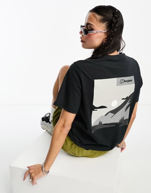Berghaus – Buttermere – Svart t-shirt i boyfriend-modell med tryck baktill