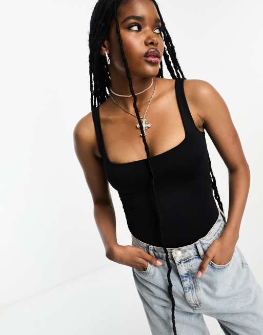 Bershka – Beige body med fyrkantig ringning