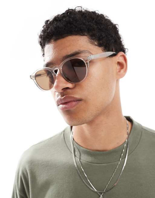 Bershka – Beige, klassiska, genomskinliga och runda solglasögon