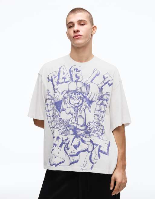 Bershka – Beige t-shirt med boxig passform och korta ärmar