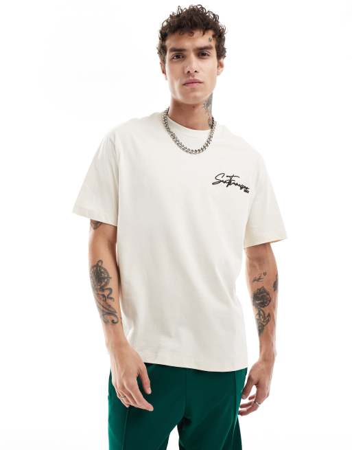 Bershka – Beige t-shirt med "San Francisco"-tryck
