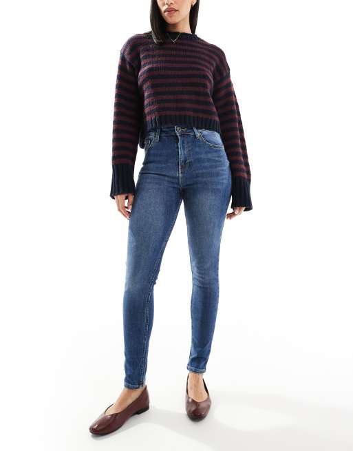 Bershka – Blå, skinny jeans med superhög midja