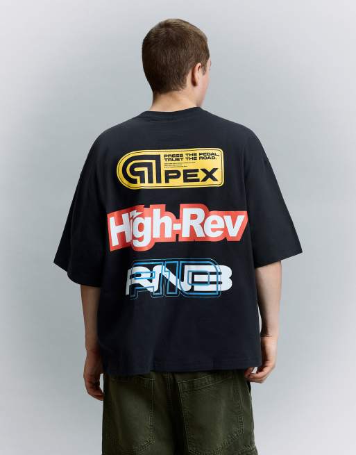 Bershka – Blå t-shirt med korta ärmar och tryck