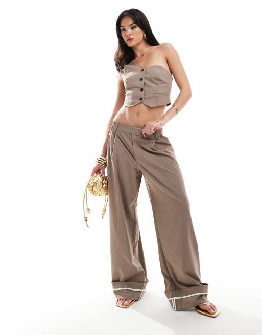 Bershka – Bruna figursydda byxor med randigt mönster och bred uppvikt nederkant, del av set