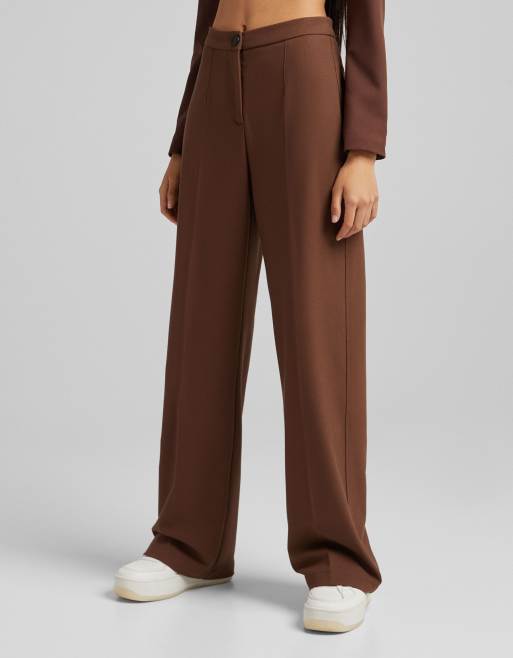 Bershka – Bruna, figursydda byxor med vida ben och slouchy-passform