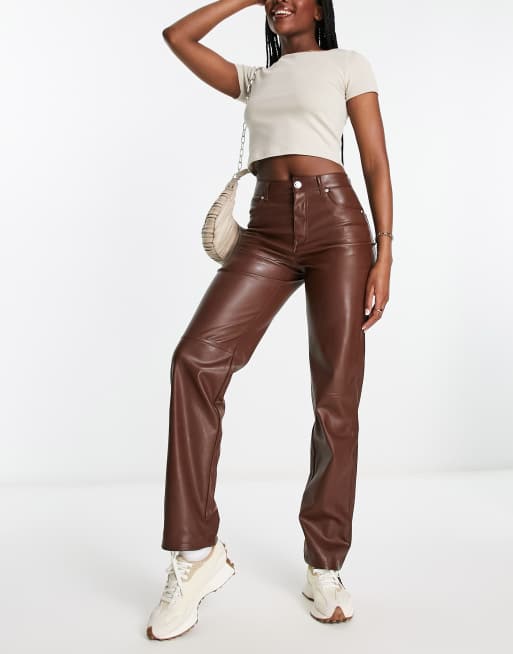 Bershka – Bruna, raka byxor i läderimitation