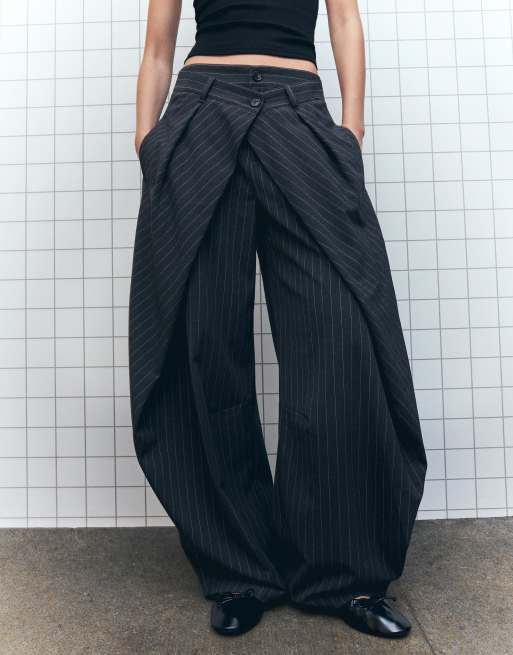 Bershka – Grå plisserade byxor med dubbla knappar