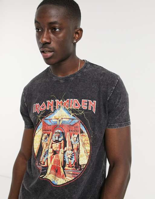 Bershka – Grå t-shirt med Iron Maiden-tryck