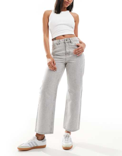 Bershka – Grå, tvättade, ankellånga jeans med raka, vida ben
