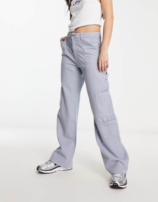 Bershka – Gråblå cargobyxor med vida ben
