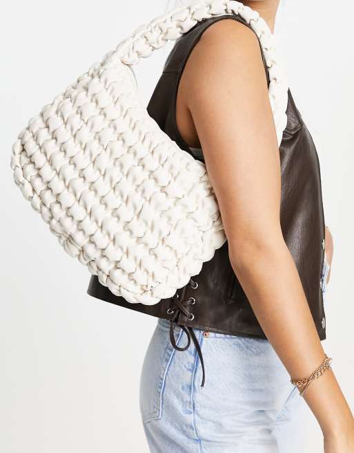 Bershka – Gräddvit, rynkad axelväska i 90-talsstil